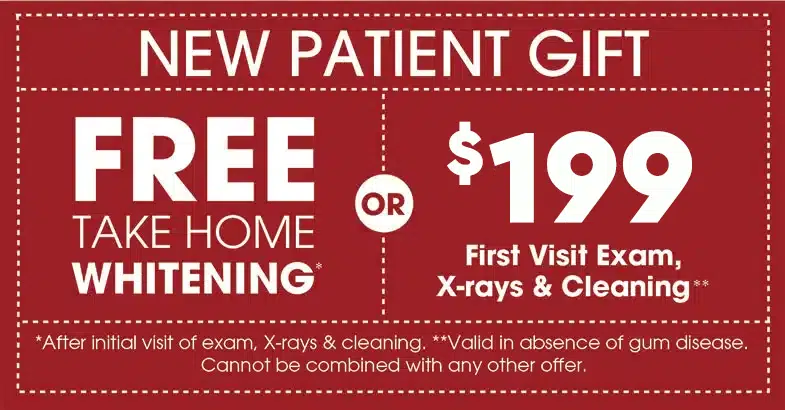 As a new patient, you can choose the $199 New Patient Deal or you can choose a free teeth whitening kit.